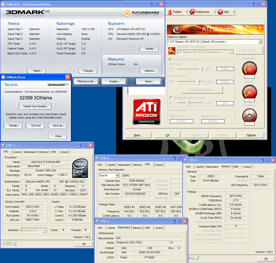 3D PerformanceMSI R4870X2-T2D2G-OC,780/1800Mhz